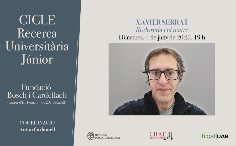 Fruit del vincle entre la Fundació Bosch i Cardellach de Sabadell i el Centre de Recerca en Arts Escèniques de la Universitat Autònoma de Barcelona (CRAE-UAB), proposem un cicle de recerca universitària júnior per donar a conèixer la investigació que actualment es duu a terme en arts escèniques a la UAB per joves investigadors.
