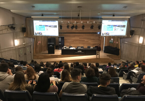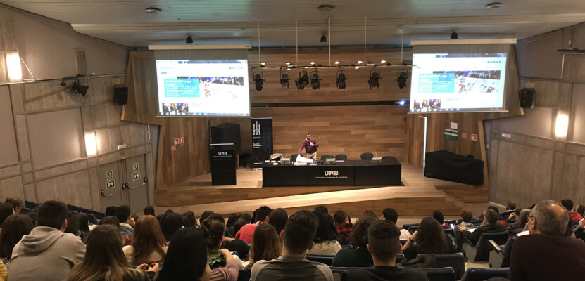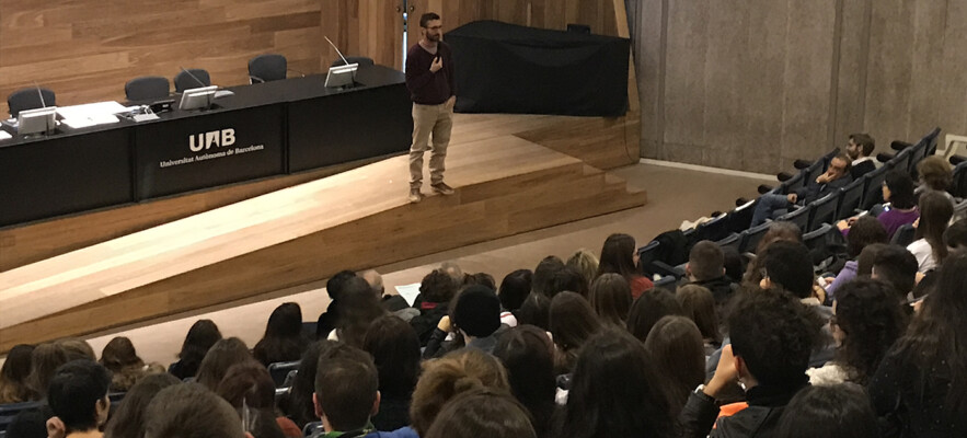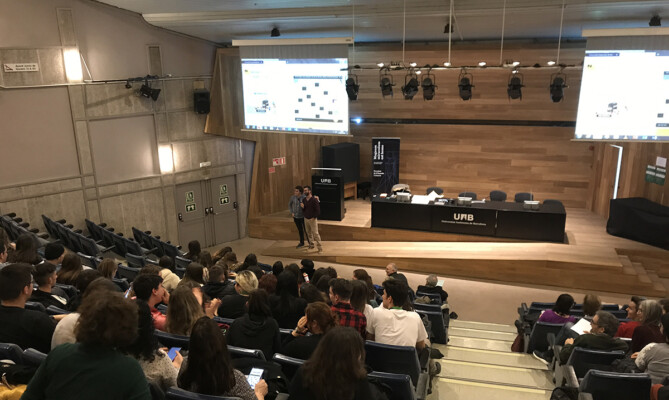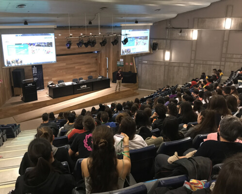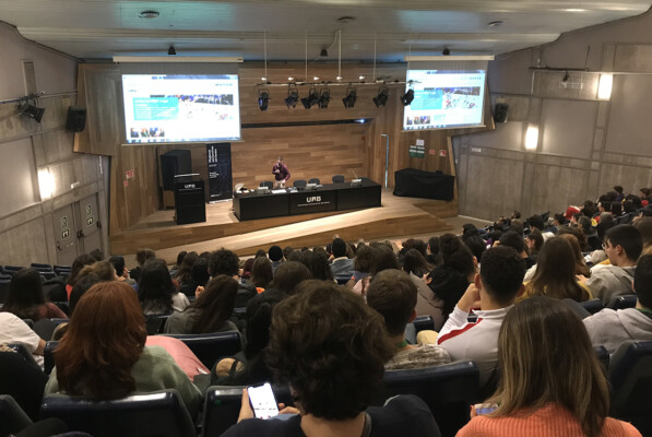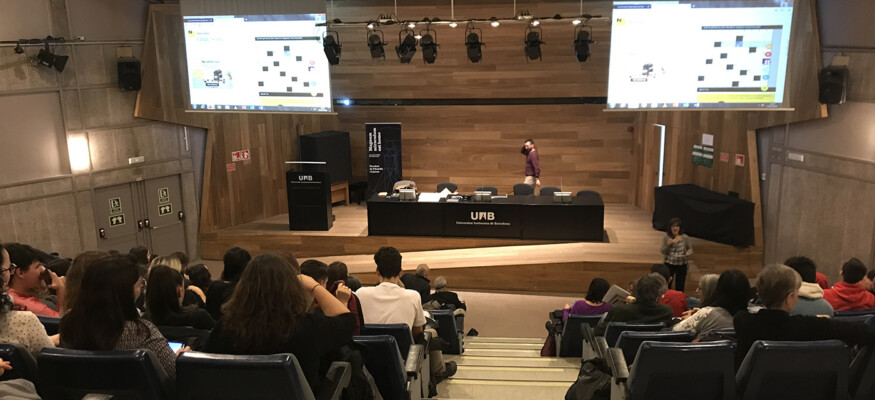 Fotografies de la sessió plenària de la jornada “Tocats de literatura 2020”, a càrrec de Pau Vidal, crucigramista i divulgador lingüístic: “Filologia recreativa”