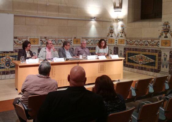 Hi van intervenir Manuel Llanas, president de la Societat Catalana de Llengua i Literatura, Josep Camps, Maria Dasca, Màrius Serra, Francesco Ardolino i Maria Guasch.