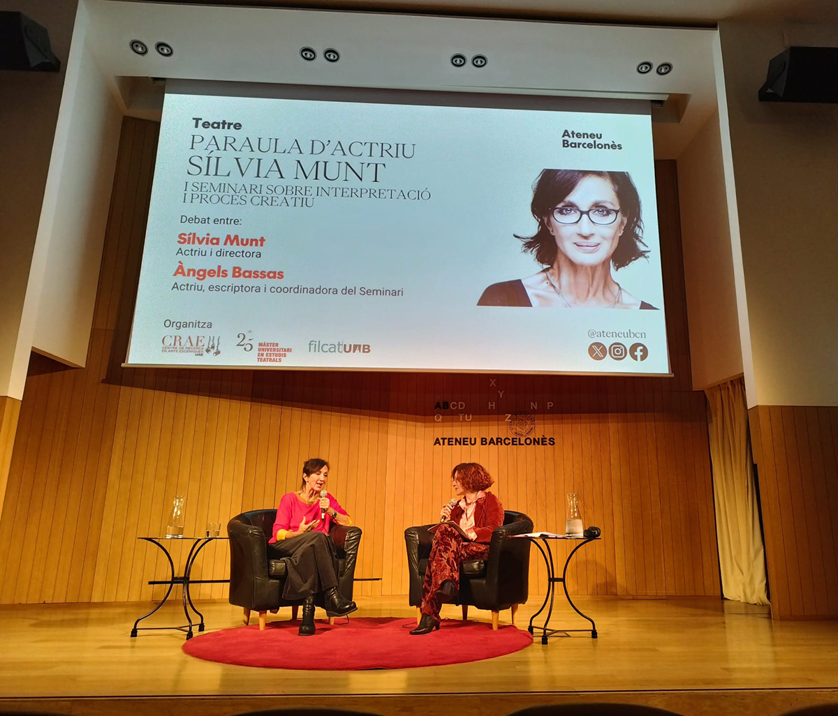 Fotografies del Seminari «Paraula d’actriu– paraula d’actor», organitzat per l’Ateneu Barcelonès i el Centre de Recerca en Arts Escèniques de la UAB. Les sessions van tenir lloc els mesos de març, maig i desembre de 2025