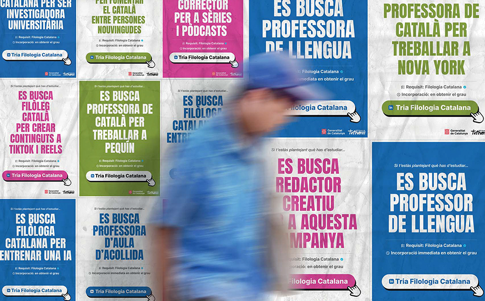 Enguany, la campanya “Tria Filologia Catalana” evoluciona i creix amb una nova imatge que posa l’accent en l’alta demanda de professionals formats en llengua i literatura catalanes. Si l’any passat ja va incloure accions amb professionals i creadors a les seves pròpies xarxes que van arribar al milió de visualitzacions, xerrades i una guia per a orientadors i professors, aquest 2025 incorpora accions d’encartellament urbà que activaran la campanya a xarxes socials per part de desenes de creadors i professionals, anuncis de tota mena de formats, així com la creació d’un filtre promocional per a TikTok i Instagram. A més, com que la decisió d’estudiar una carrera es va perfilant al llarg del batxillerat, a partir d’ara la campanya “Tria Filologia Catalana” estarà activa durant tot l’any, amb continguts adaptats al llarg del curs, tant per a l’alumnat com per al professorat, agent clau per donar visibilitat al grau. Aquestes actuacions es coordinen amb els departaments de Filologia Catalana de les universitats.