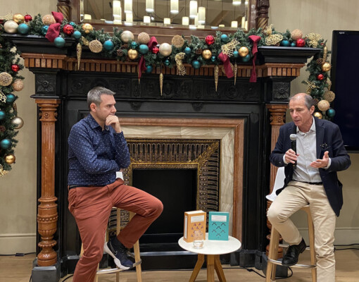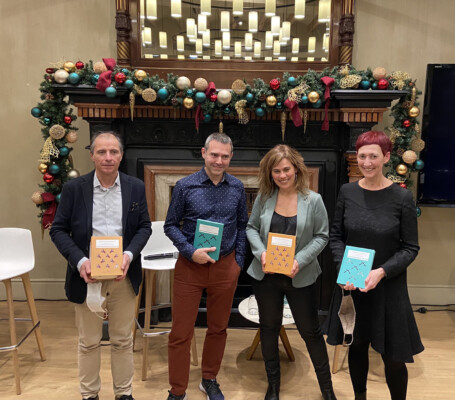Amb el professor Josep Pujol, Oriol Magrinyà (director de l’editorial Barcino), Marta Esteve (directora de la Fundació Lluís Carulla) i la professora Margarida Casacuberta.